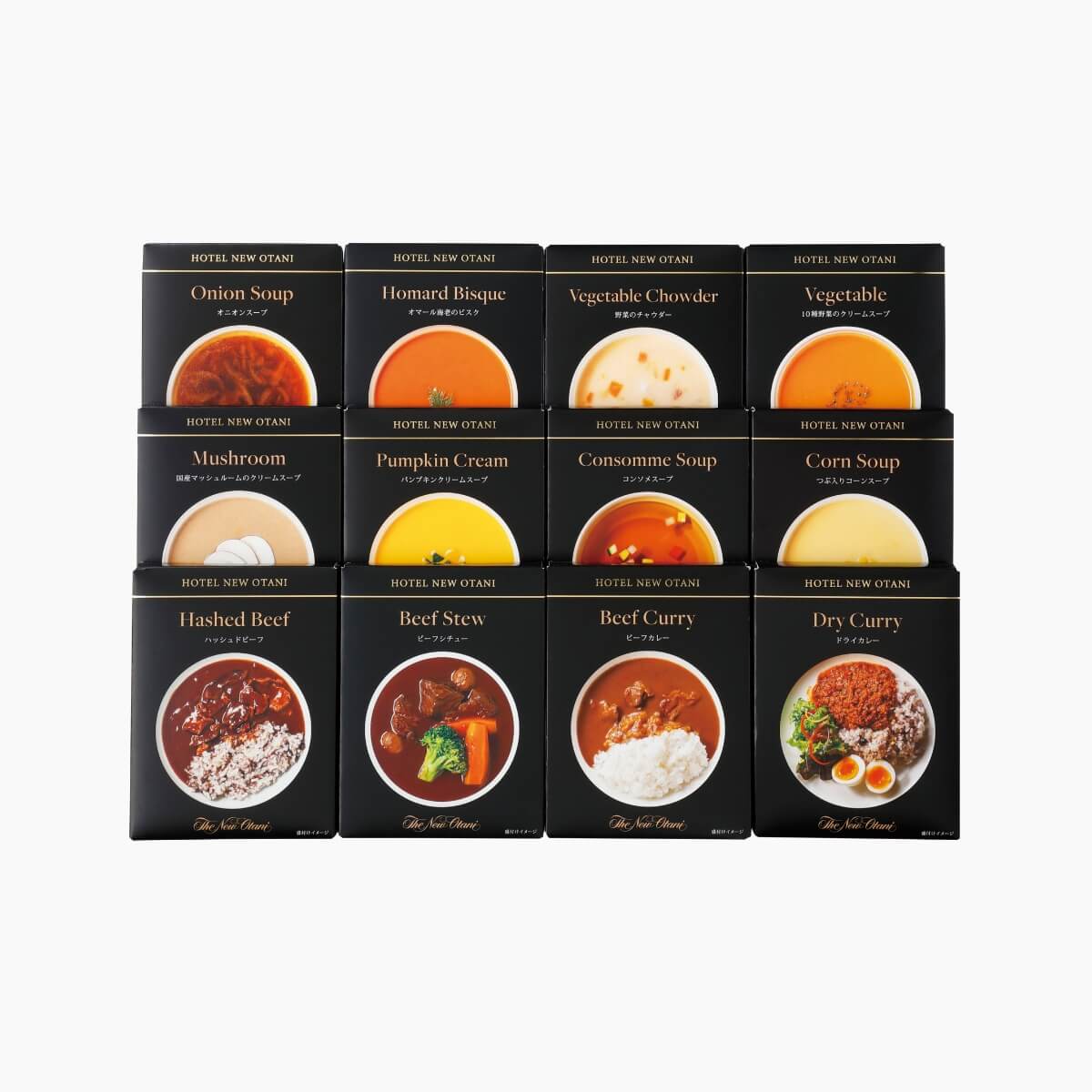 ホテルニューオータニのシェフ監修、素材の味を生かしたシリーズです。こだわりの味を簡単に楽しめる、たっぷり12食入り。食べ比べを楽しめます。