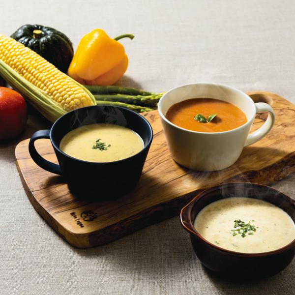 | 内容 | 蓮根とほうれん草のグリーンポタージュ×1、とうもろこしの贅沢ポタージュ×1、エビとトマトの濃厚スープ×1、とろ~り濃厚かぼちゃのスープ×1 各180g |