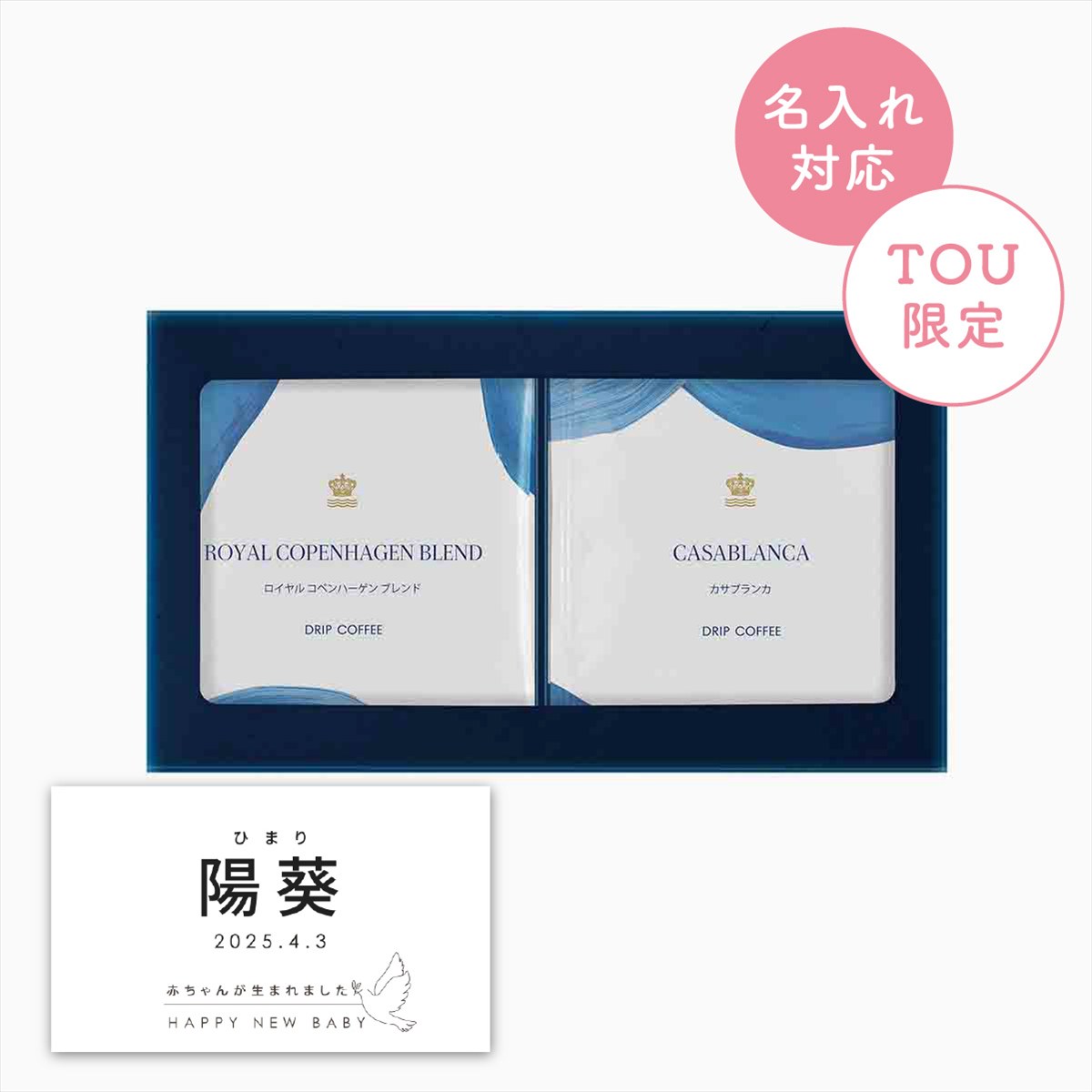 TOP > to:u > 商品カテゴリから選ぶ > 名入れ商品 > ドリンク > ロイヤル コペンハーゲン ドリップコーヒーセット【名入れラベル:B】