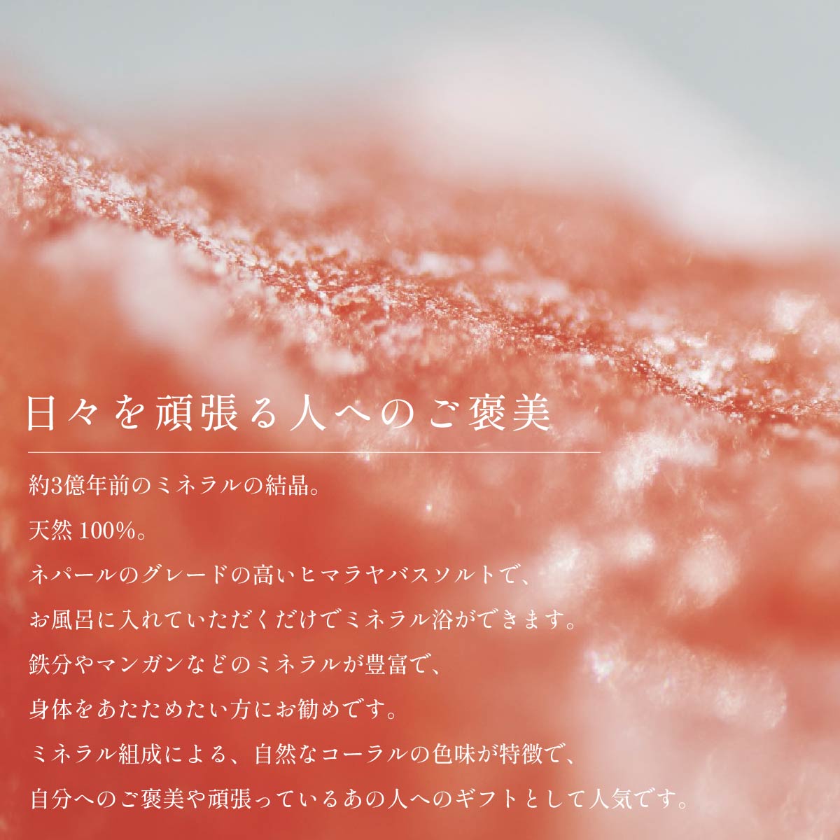 TOP > to:u > 商品カテゴリから選ぶ > コスメ・ビューティー > 入浴剤・バスケア > イウミー クォーツバスソルト コーラル 【いたわり】