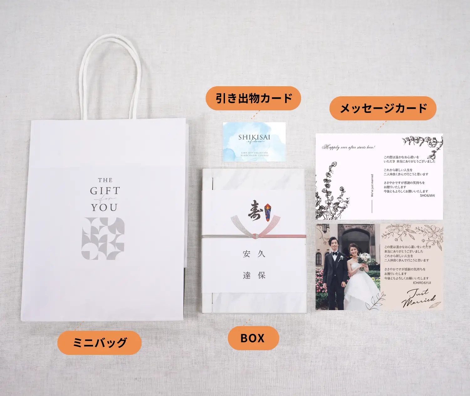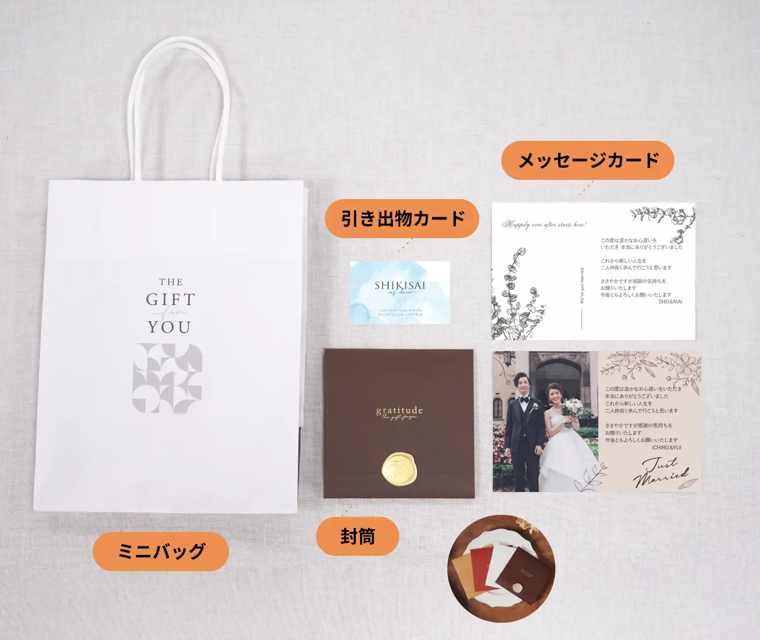引出物用の準備物が多く引出物どうしようと悩んでいたときにTo:Uに出会いまあした。カードを用意するだけで解決したのでとても助かりました!