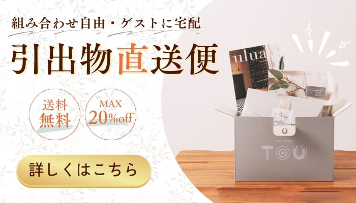 引出物宅配と違い、住所集めや管理も必要ないので、本当に手間が削減できるのもおすすめポイントです。