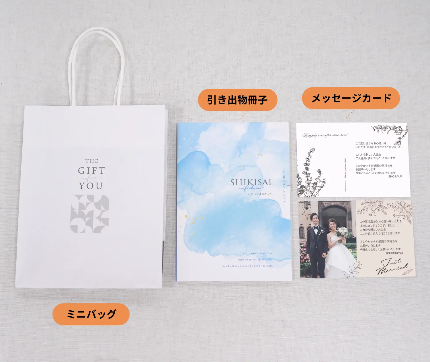通常はゲストに合わせて引出物を選ぶ必要がありますが、To:Uの引出物カードは、コースを選ぶだけでOK。